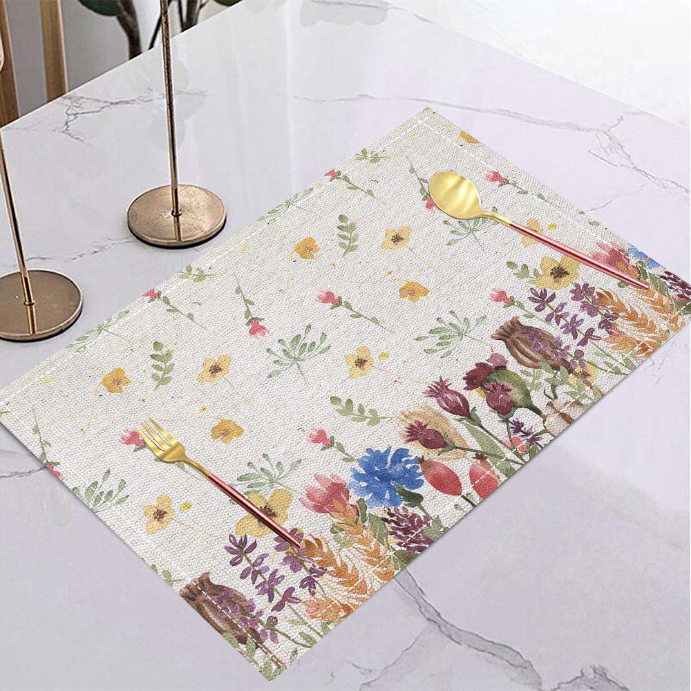 4/6/8pcs Spring floral Pattern Placemats Kitchen Dining Table Mat Decor Accessories Heat Resistant Linen Tableware Mats