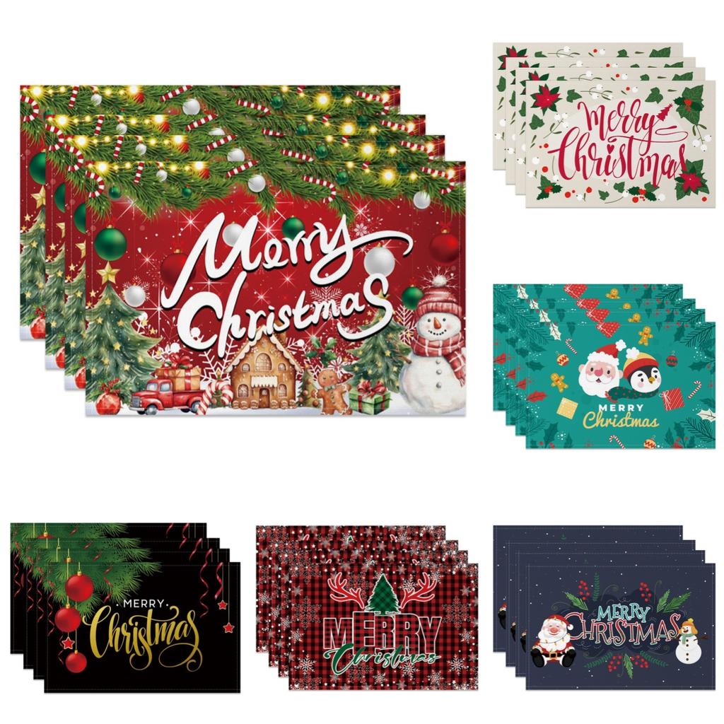 Christmas Table mat dining table Xmas Tree Snowman Santa Gingerbread House Linen Fabric Merry Christmas Holiday Table Decoration