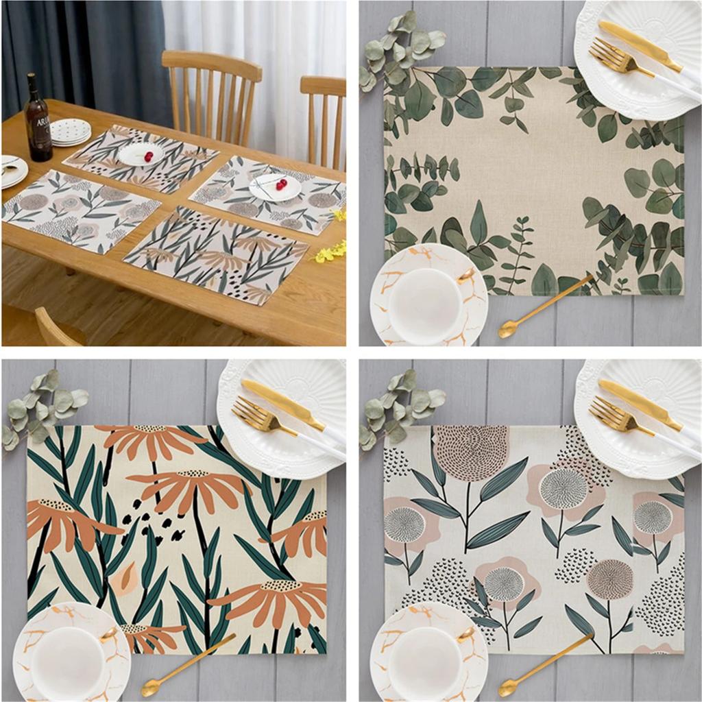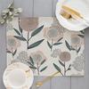 Morandi Floral Sunflower Printing Linen Placemat for Dining Table Drink Coaster Home Decoration Modern Kitchen Cup Pads
