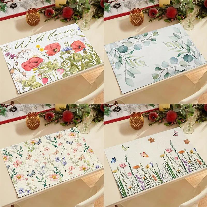 1PC Summer Eucalyptus Placemats for Dining Table Decoration Spring Seasonal Holiday Decoration Vintage Linens Table Mats