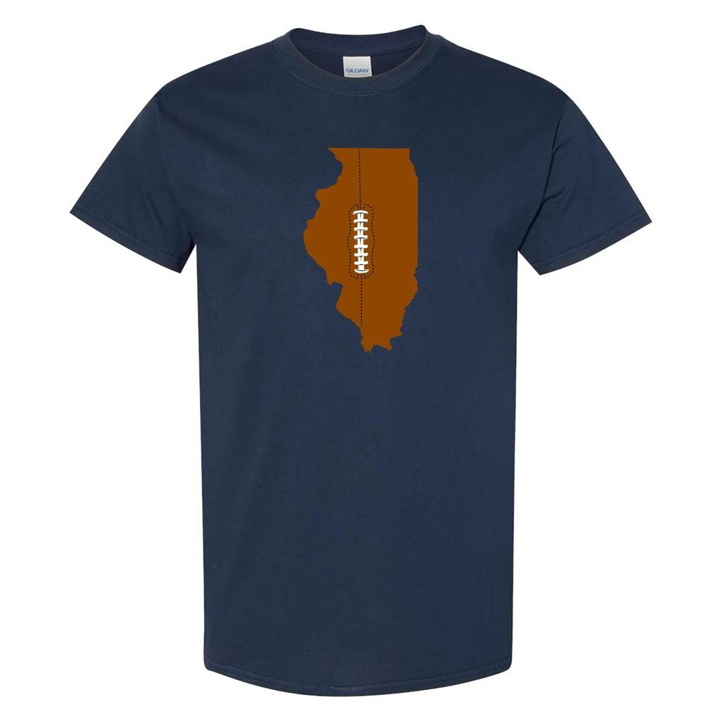 Illinois Football State Shape - Hometown Pride T Shirt - Navy