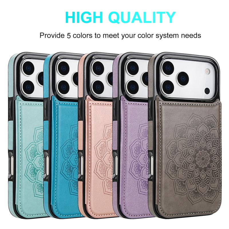 Mandala Card Pocket Leather Wallet Case For iPhone 17 Pro Max 16 15 Pro Max 14 13 12 11 Magnetic Metal Buckle Card Holder Back Cover