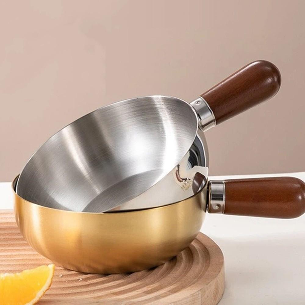 Wooden Handle Single-person Pot Thickened Even Heat Distribution Milk Pot Heat-Resistant Non-stick Stainless Steel Pot