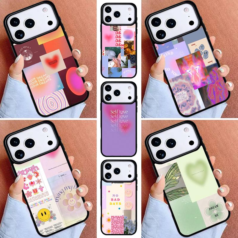 art pastel icons positive words Phone Case for iPhone 16e 15 14 13 12 17 Pro Max Plus Air 17pro Cover Coque