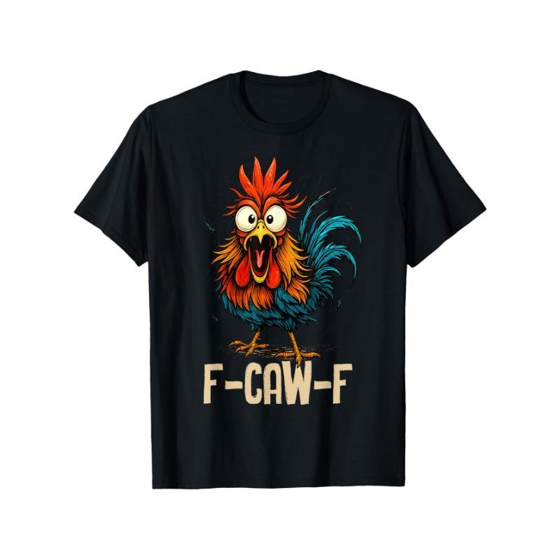 Evropské velikosti F Caw F Kohout Vtipný pták Fcawf Kuřecí šeptanda Fawk Off Tričko | Vtipný humor Sarcasmus Grafické Novinkové Tričko