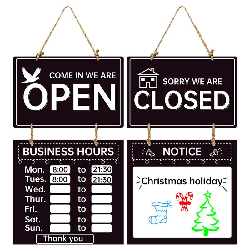 Oboustranná cedule s otevírací dobou obchodu Cedule Otevřeno a Zavřeno s hodinami Dekorativní uvítací tabule Otevírací doba pro obchod prodejnu posilovnu
