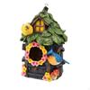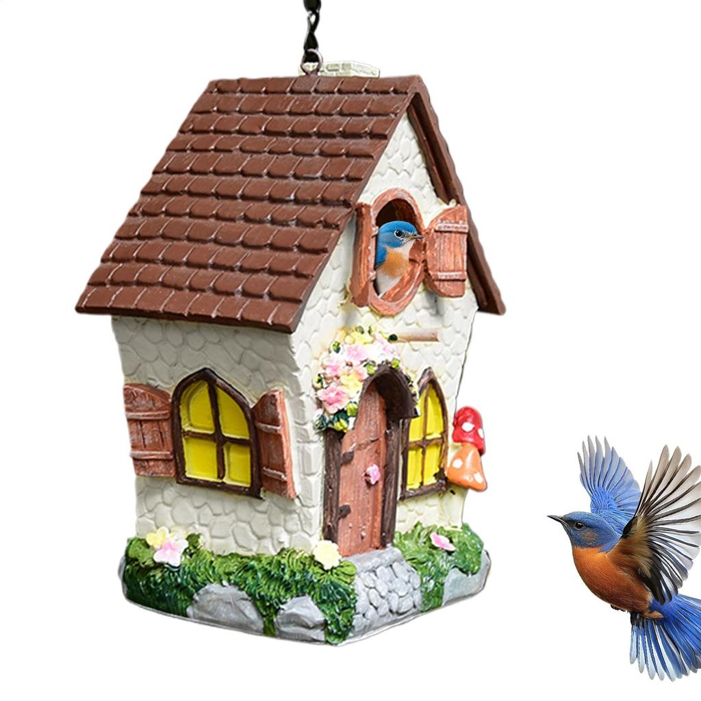 Outdoor Fairy Garden Bird House 8.3-inch Hand-painted Resin Decorated Bird Nest With Chain Waterproof Cute Bird House