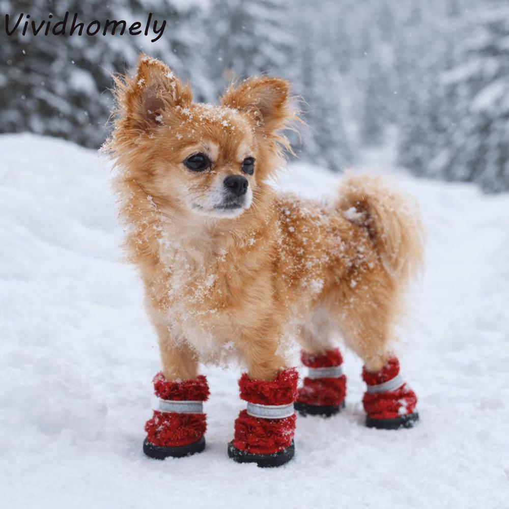 4 pcs/set Fashion Warm Dog Cotton Shoes Wear-Resistant Anti-Scratch Anti-Slip Dog Shoes Comfortable Winter Dog Boots Camping