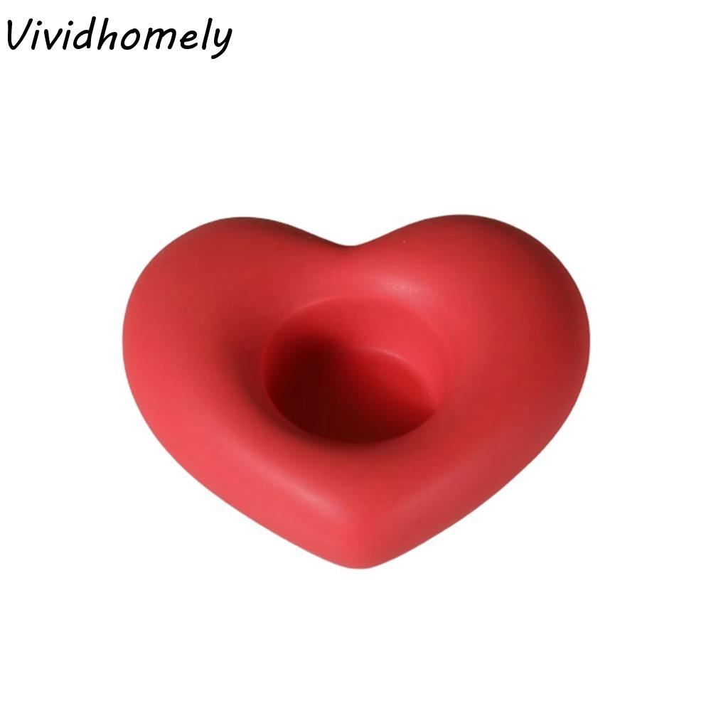 Ceramic Material Heart Shaped Candle Holders Red/White Color Heart Shape Design Ceramic Candlestick Decorative Smooth Surface