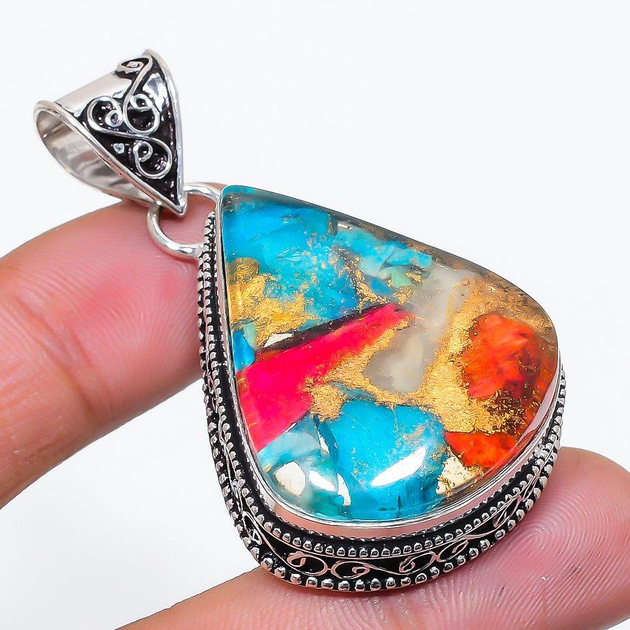 Natural Spiny Oyster Gemstone 925 Sterling Silver Jewelry Pendant 2.17" AP-14310