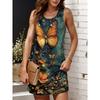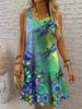 Women's Dragonfly 3D Print Long Dress, Off Shoulder Sleeveless Crew Neck A-Line Casual Summer Dress