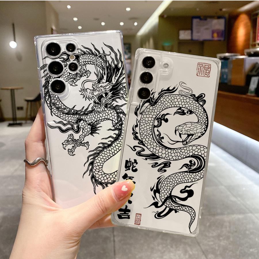Black Dragon Snake Soft Cover Phone Case for Samsung Galaxy S24 S23 Ultra Note 20 Ultra S25 S22 FE S20 Plus S21 S20FE S22 Plus