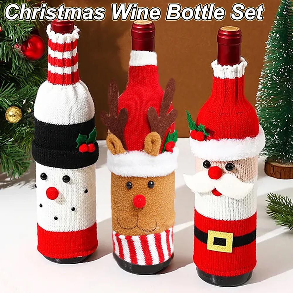 Vánoční sada obalů na láhve Santa Sněhulák Tkané sáčky na láhve na vánoční večírek Dekorace jídelního stolu Novoroční dárky