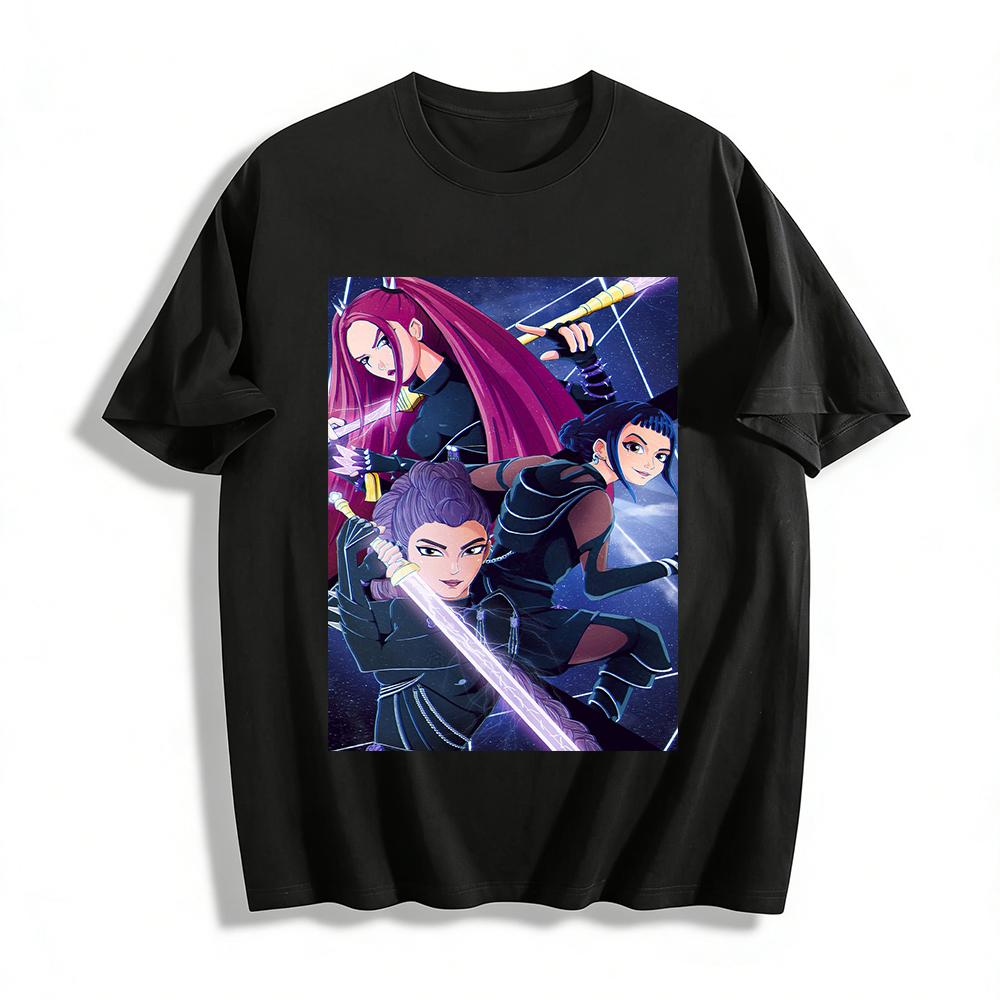 Dark Cool Anime Girl Group Print T-shirt Stylish Cool Secondary Character Pattern Casual Top Pure cotton T-shirt
