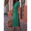 Summer Women's Elegant Long Dress, O Neck Short Sleeve Waist Tie Maxi Dress, European American Style Casual Party Long Dress