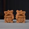 wood carving Chinese style cute little lion sculptures and figurines Mascot Home, Room, Office, Car Wealth Luck Feng Shui Decor