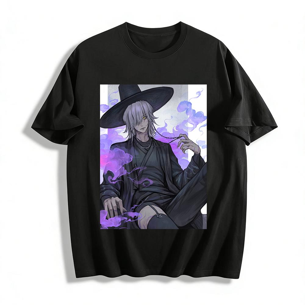 Dark Style Mysterious Silver-haired Heterochromia Character Print Long-sleeve T-shirt Niche Trendy Anime Tops Pure cotton T-shirt