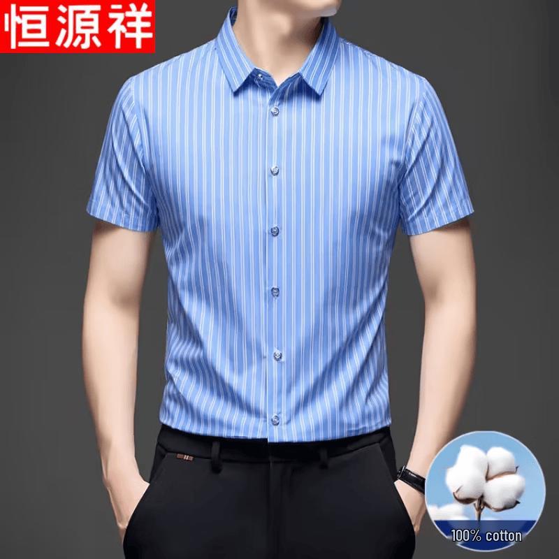 Hengyuanxiang Men's Pure Cotton Striped Short-Sleeve Business Casual Shirt