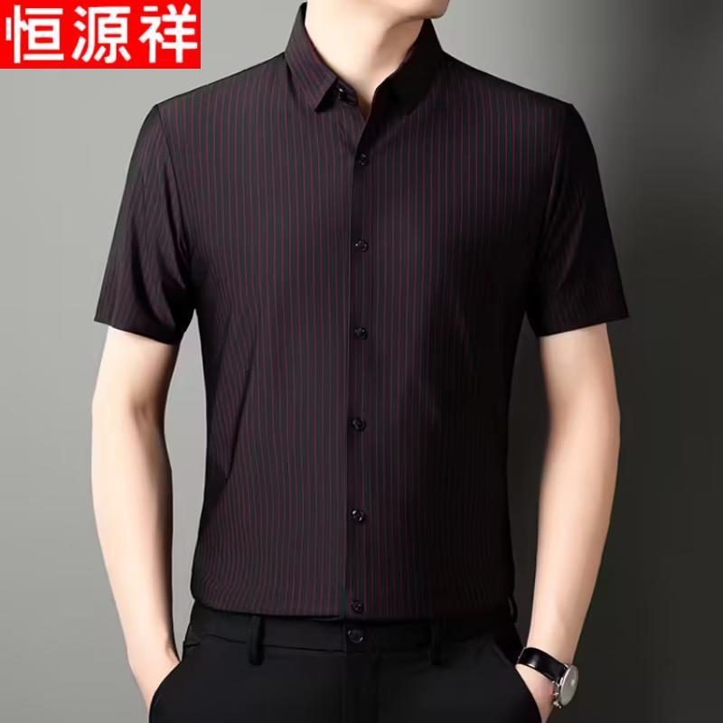Hengyuanxiang Men's 2026 Summer Ice Silk Striped Short-Sleeve Shirt
