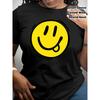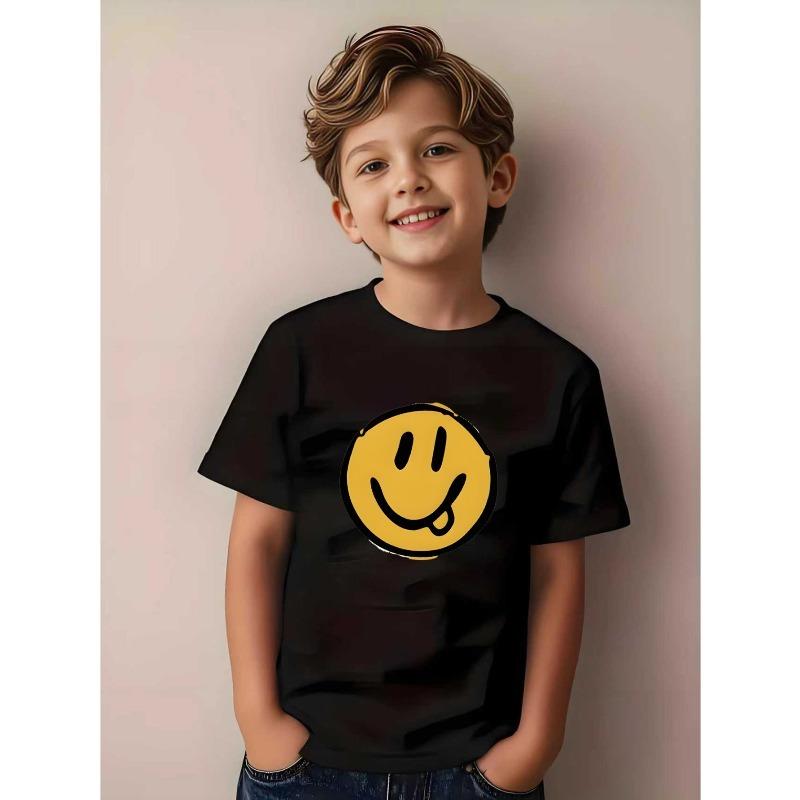 Evropské velikosti Chlapecké tričko se vzorem veselého obličeje | Bílé se žlutým potiskem, Měkká pružná látka, Kulatý výstřih, Krátké rukávy, Ležérní letní top