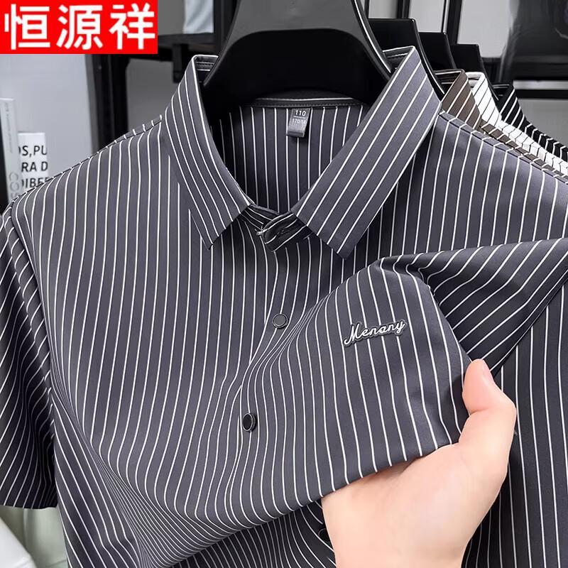 Hengyuanxiang Men's Striped Ice Silk Short-Sleeve Non-Iron Shirt
