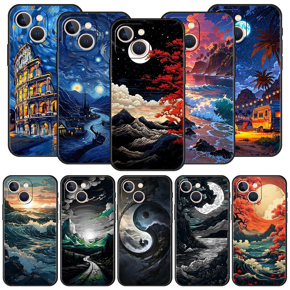 Landscape Art Phone Case For iPhone 16 13 15 14 12 11 Pro MAX XR X SE XS 7 8 Plus Soft TPU Shell Cover