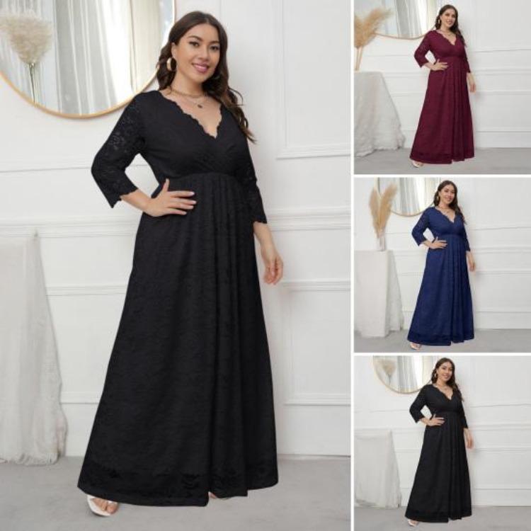 Elevate your style with this exquisite Women's Dress crafted from high-quality polyester spandex. The plus-size lace dress features a blend of chiffon and embroidered fabric, ensuring a comfortable and lightweight feel.