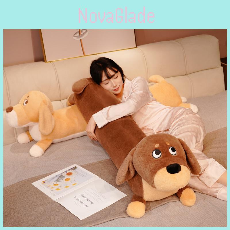 This plush dachshund doll functions as a cuddly long body pillow, measuring 80cm, 100cm, or 130cm in height, crafted from soft plush fabric and filled with durable PP cotton for a comfortable feel. Its realistic animal design offers a charming addition to any room. Ideal for resting or sleep support, it is easy to clean by hand-washing.