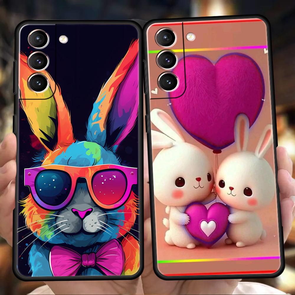 A Cute Rabbit With A Purple Hat Case for Samsung Galaxy S24 S23 S22 S20 S21 FE Ultra S24 S23 S10 S10E S9 S8 Plus 5G Phone Cover