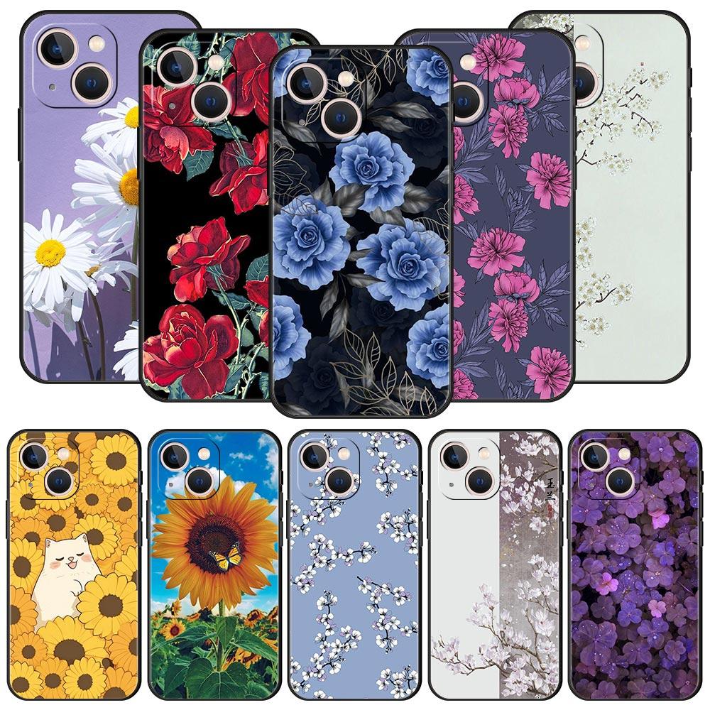 flower 12 Luxury Phone Case For iPhone 13 15 14 12 Mini 11 Pro MAX XR X SE XS 7 8 Plus Silicone Black Protection Cover