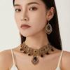 Metal Necklace Earrings Set Bohemia Style Ethnic Style Necklace Set Rhinestone Jewelry Set Women