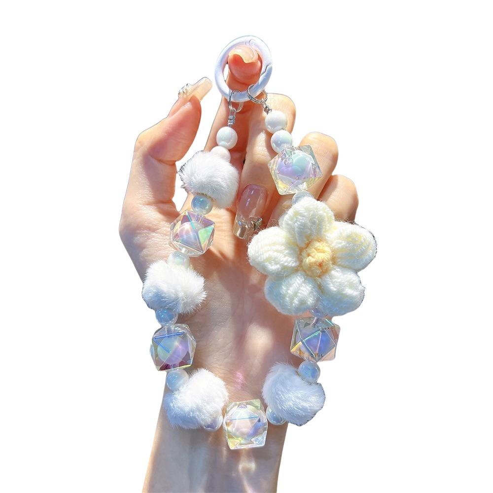 Sweet Beaded Phone Strap Plush Ball Car Key Ring INS Knit Beads Keychain Children