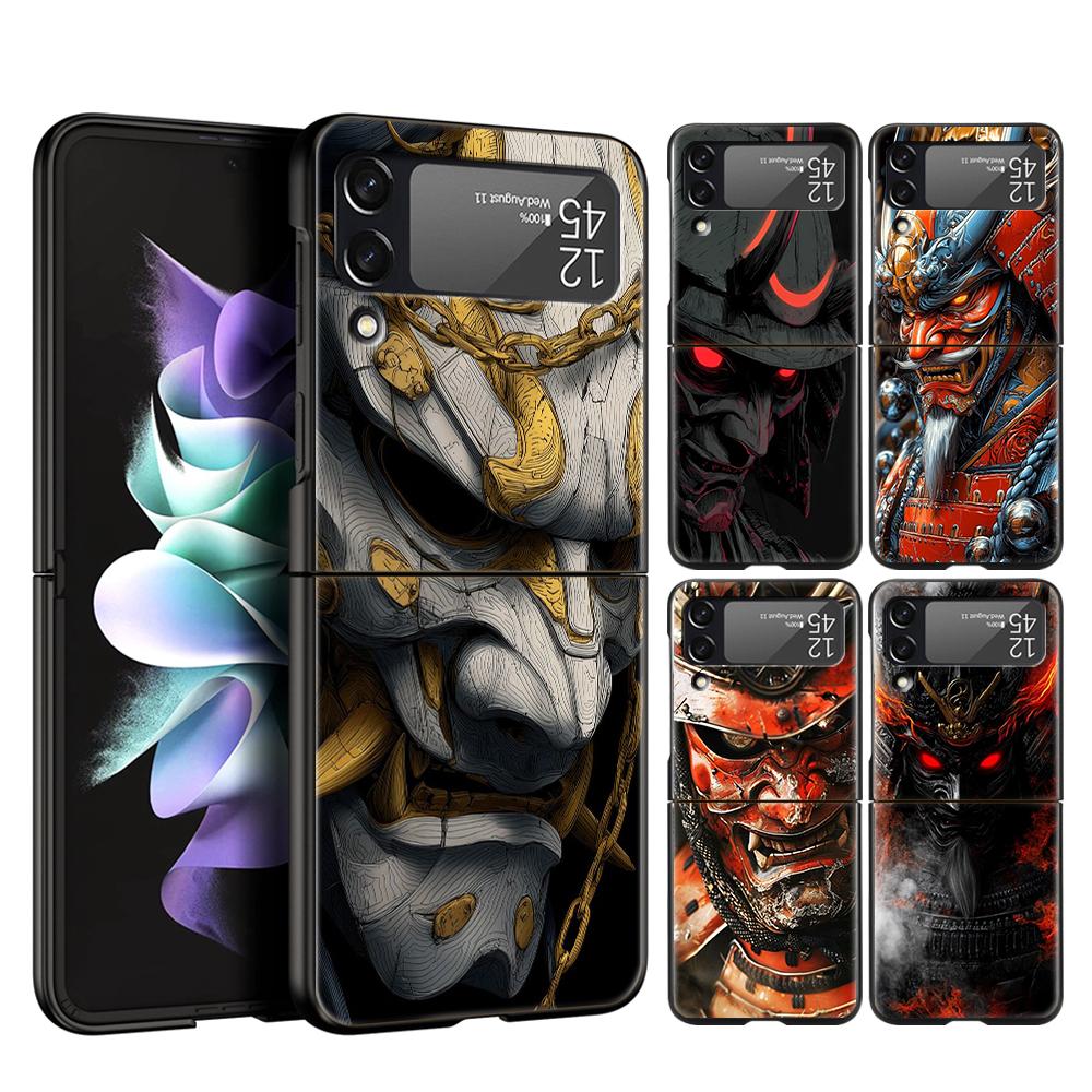 Hard PC Phone Case For Samsung Galaxy Z Flip 7 6 5 4 Black Cover For Galaxy Z Flip 3 Foldable Bag Capas Japan Ghost Face Samurai
