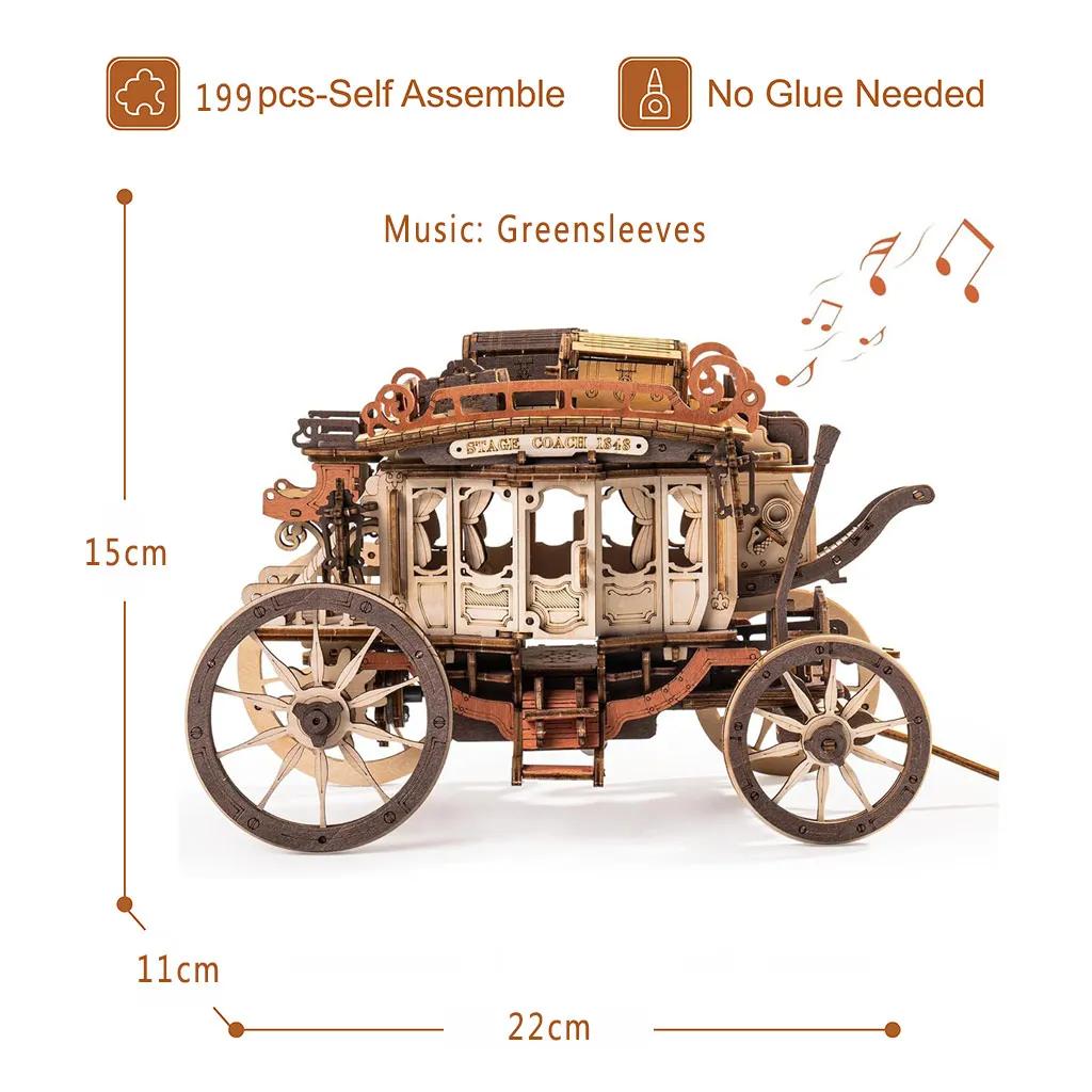 ROBOTIME ROKR Stagecoach Mechanical Music Box 3D Wooden Puzzle AMKA1