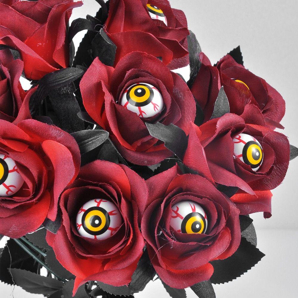 Black Red Roses Artificial Roses Scary Eyeball Design Halloween Home Decor Artificial Goth Eye bouquet Halloween Party Supplies