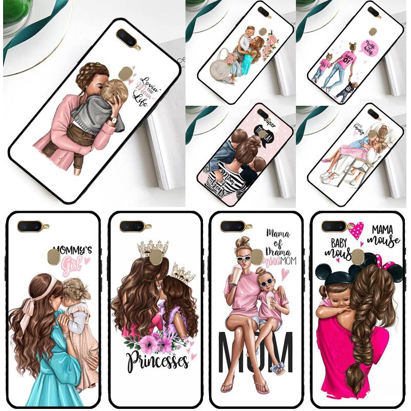 Brown Hair Baby Mom Girl Queen Case For Oppo A60 A40 A80 A16 A76 A96 A18 A38 A58 A78 A98 A91 A15 A17 A74 A94 A54 A57S Cover
