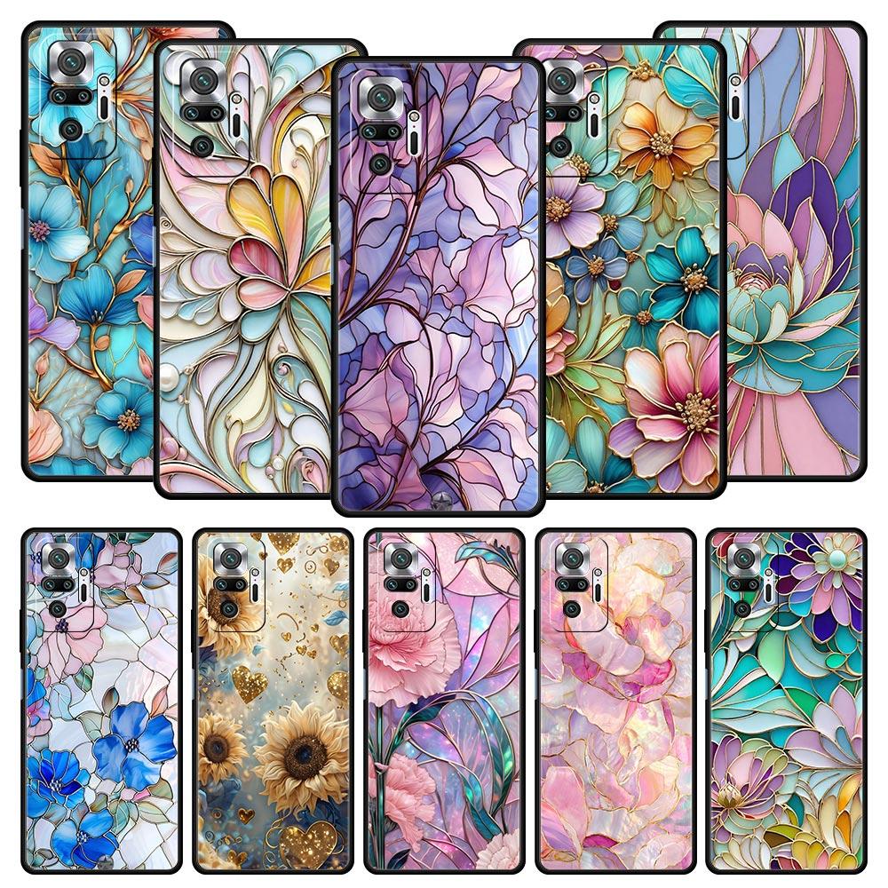 Fashion Flower Pattern Phone Case For Xiaomi Redmi Note 14 13 5G 10 11 12 Pro Plus 4G 14C 13C 12C 10C Black Cover