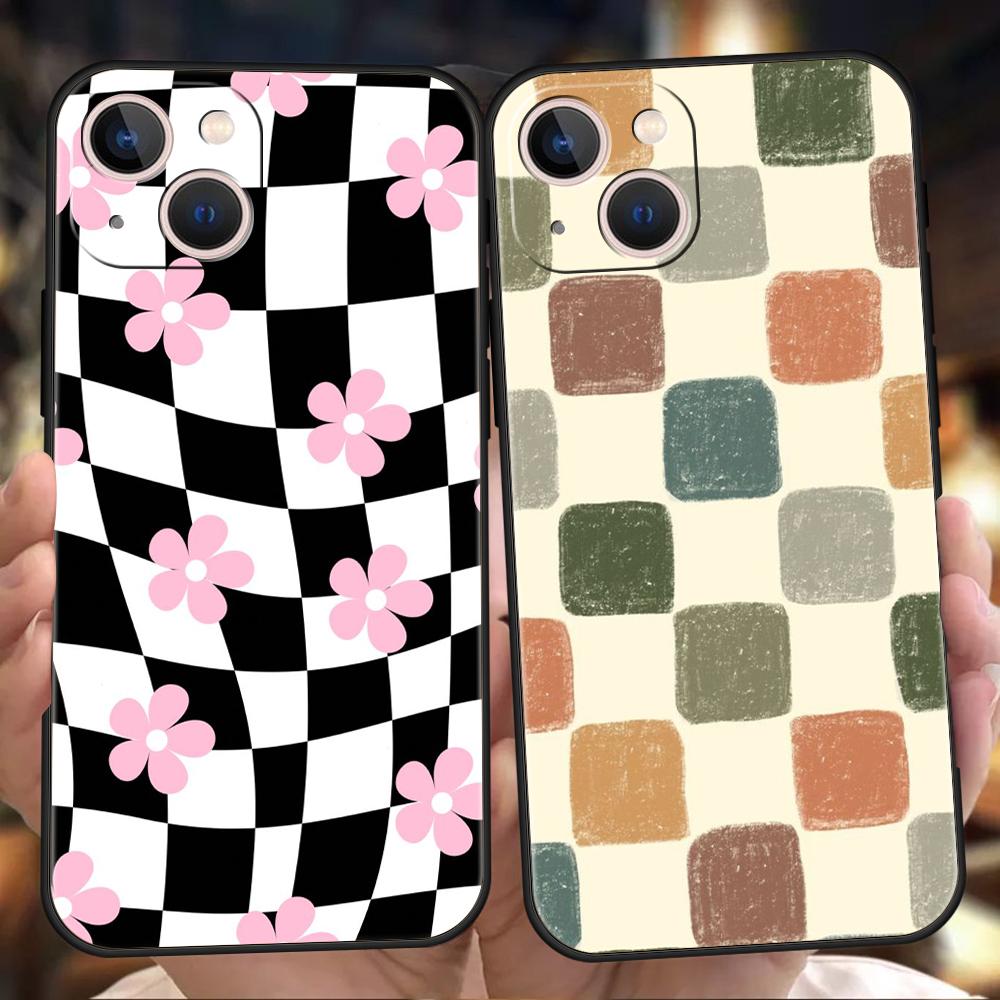 Luxury Soft Phone Case For iPhone 17 Air 16E 16 11 15 14 Pro MAX 12 13 7 8 Plus X XR XS SE 2022 Cover Checkerboard chess board