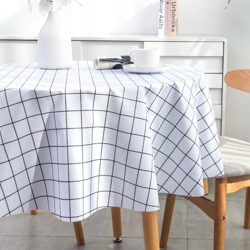Nordic Round Table Tablecloth Modern Pvc Grid Printed Waterproof Oil-proof Anti-hot Table Cloth Coffee Dining Table Mat Plastic