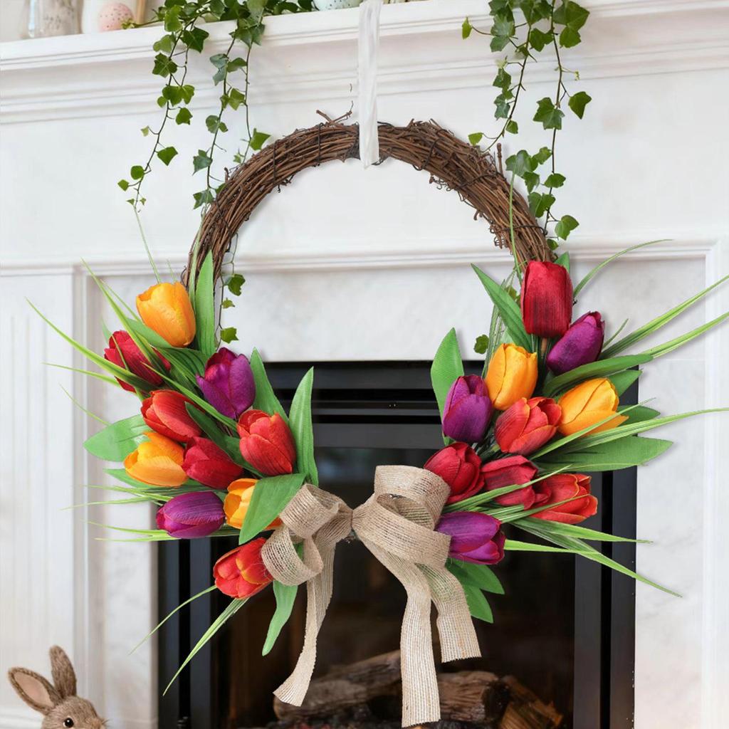 Spring Wreath Artificial Floral Decor Spring Flower Wreath for Living Room Bedroom Indoor Outdoor Home Window Wall Wedding