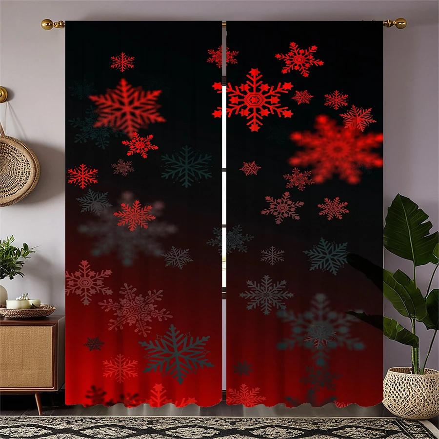Christmas Tree Snowflake Pattern Printed Curtains Decorations Home Room Set Of 2 Made Polyester