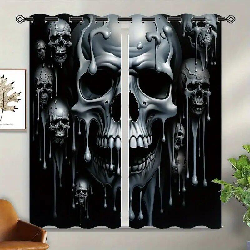 Halloween Abstract Wax Drip Skull Pattern Printed Curtains Window Decorations Home Room Made Of Polyester