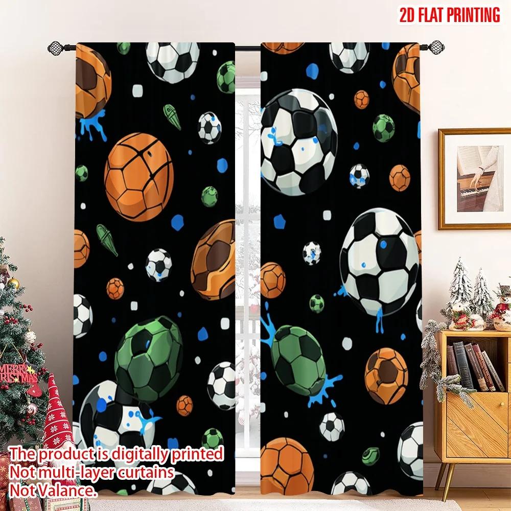 Set Of 2 Flat Printing Curtain Sports Balls Seamless Digital Printed Polyester Drapes Party Decorations Use Bedroom Office Curtains Made Master Window