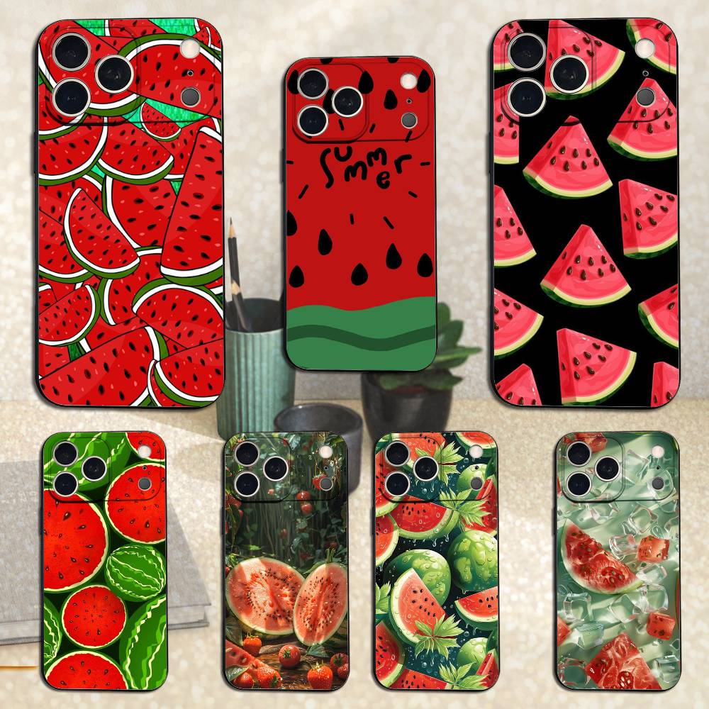 Summer Red Watermelon Case For iPhone 12,14,15,16,11,17,13,X,Mini,SE,XS,Plus,Pro,Max,8,7,XR,Soft Silicone Black