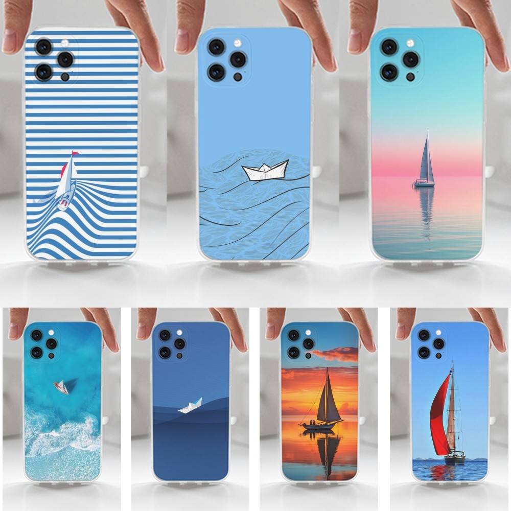 Sailing Boat Case For iPhone Max,14,16,X,13,XR,SE,12,15,Pro,17,Plus,11,XS,Mini Transparent Soft Cover