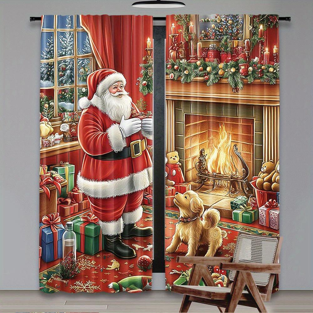 Christmas Santa Tree Pet Curtains Polyester Light Blocking Living Room Bedroom Decor Set Of 2 Made With Rod Pocket Machine Washable