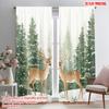 Set Of 2 Hd Forest Snow Scenery Elk Decorative Curtain Green Digital Printed Home Decoration Style Living Curtains Made Polyester