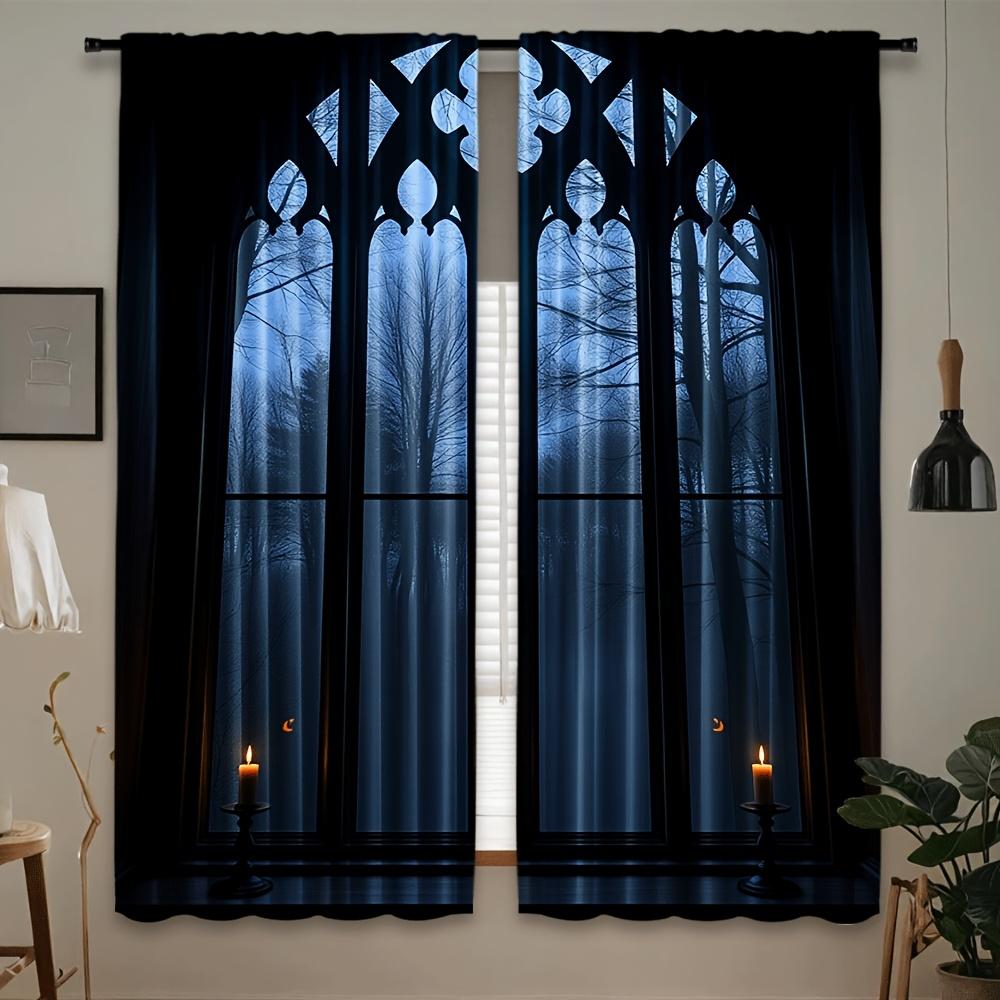 Set Of 2 Gothic Style Curtains Horror Themed House Featuring Design Suitable Bedroom Living Room Made Polyester Area Window Treatment