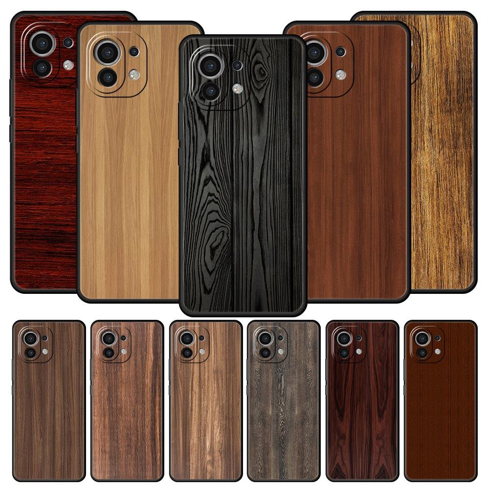 Carved Wood Phone Case For Xiaomi Poco X3 NFC M3 M4 F4 X4 Pro 5G F3 GT Mi 12 11T 10 9T 10T Lite 11 Ultra Silicon Black Cover