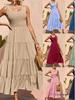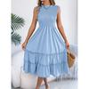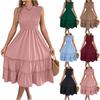 Spring Summer Women's Casual Smocked Waist Sleeveless Ruffle Trim Flowy Maxi Long Dress for European American Crossborder